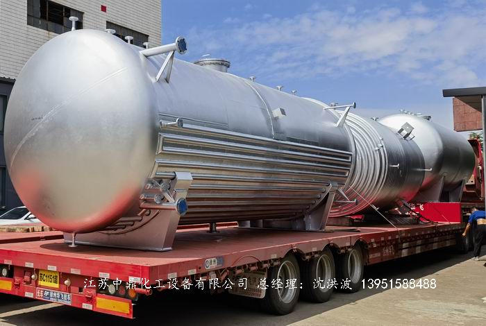 江蘇中鼎化工設(shè)備有限公司承接國內(nèi)某大型企業(yè)的 臥式不銹鋼儲罐 帶外半圓直管加熱 保溫儲罐